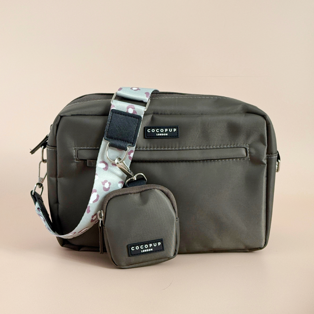 Our Bag Bundle includes: Large Bag, Treat Pouch & Sage Leopard Strap (with inbuilt poop bag dispenser!)