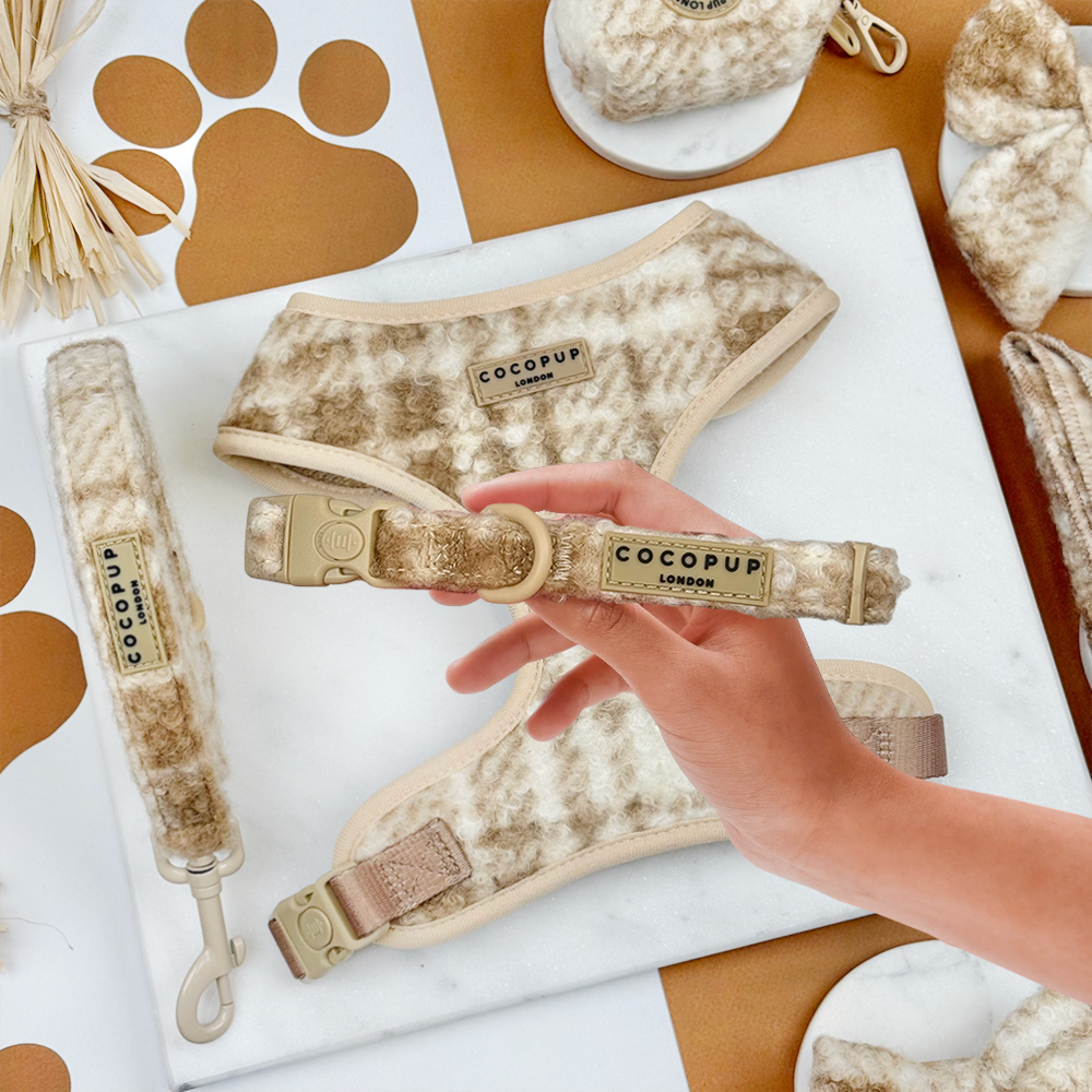 Snuggle up in style with the Highland Fleece Collar in oatmeal—your pup's new favourite walk-time essential. In dreamy cream and nude shades, this soft fleece collar wraps your furry friend in pure comfort. Perfect for those crisp dog-walking days, because every adventure is better when you're wrapped in softness and love.
