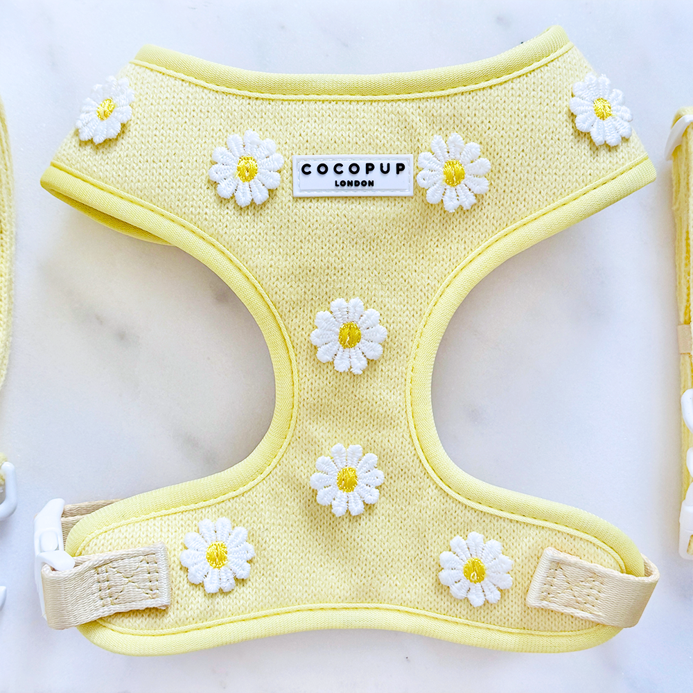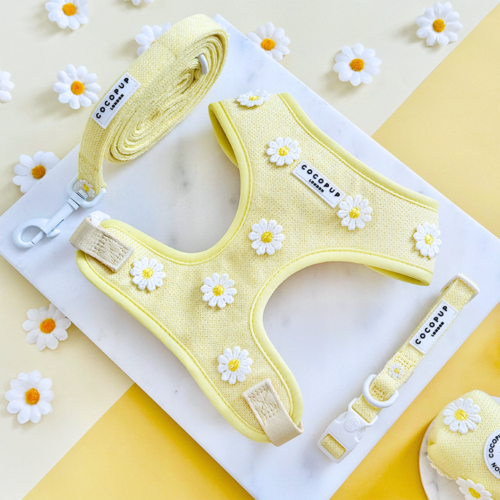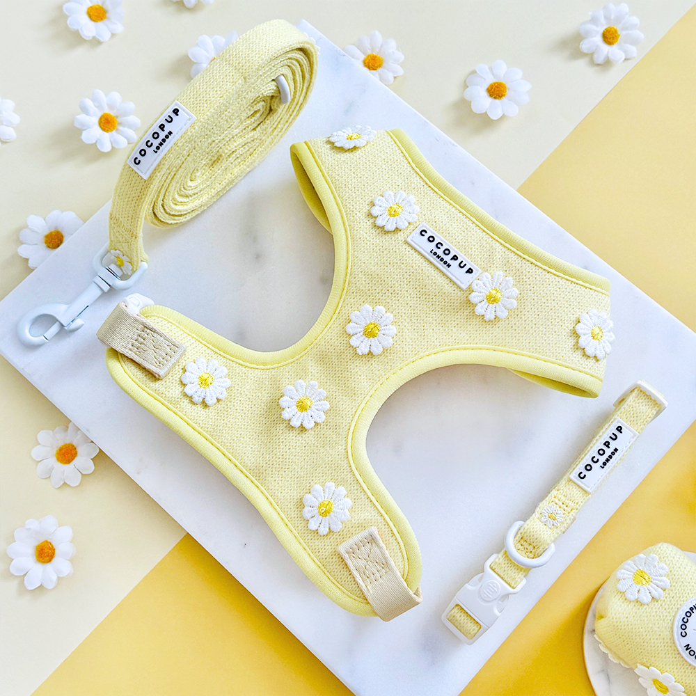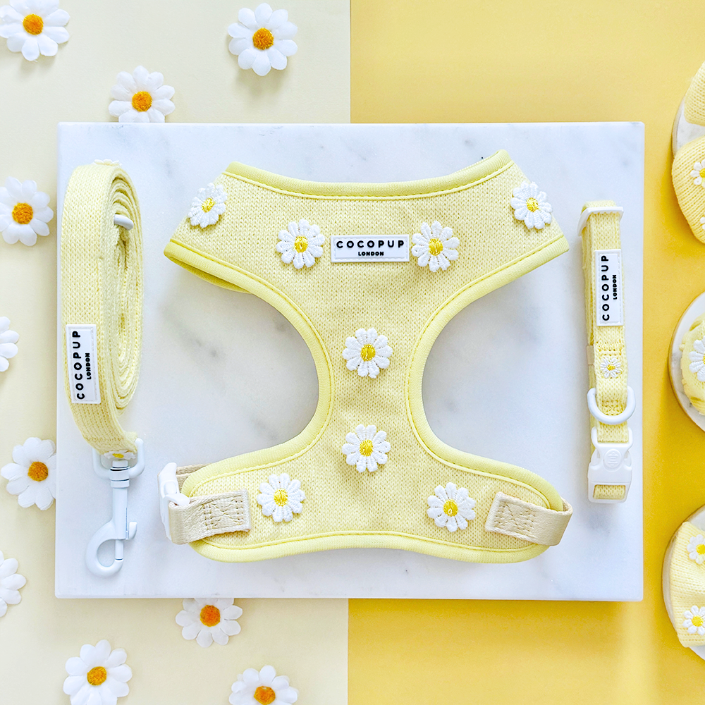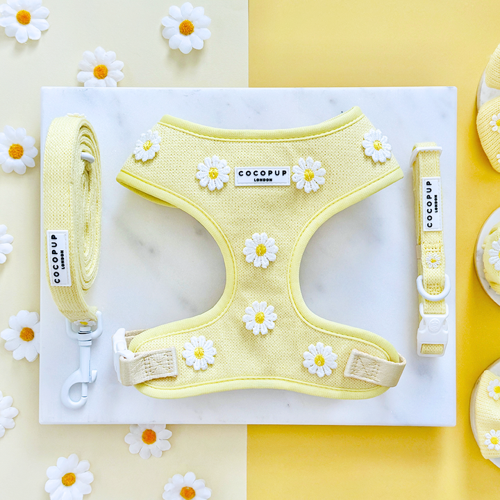 Unleash your pup's style with our Buttercup Pup Adjustable Neck Harness, Lead & Collar Bundle!Perfect for everyday walks, this buttery yellow set features adorable daisy details and adjustable straps for a comfortable fit. Watch your furry friend strut their stuff in this playful and practical bundle.