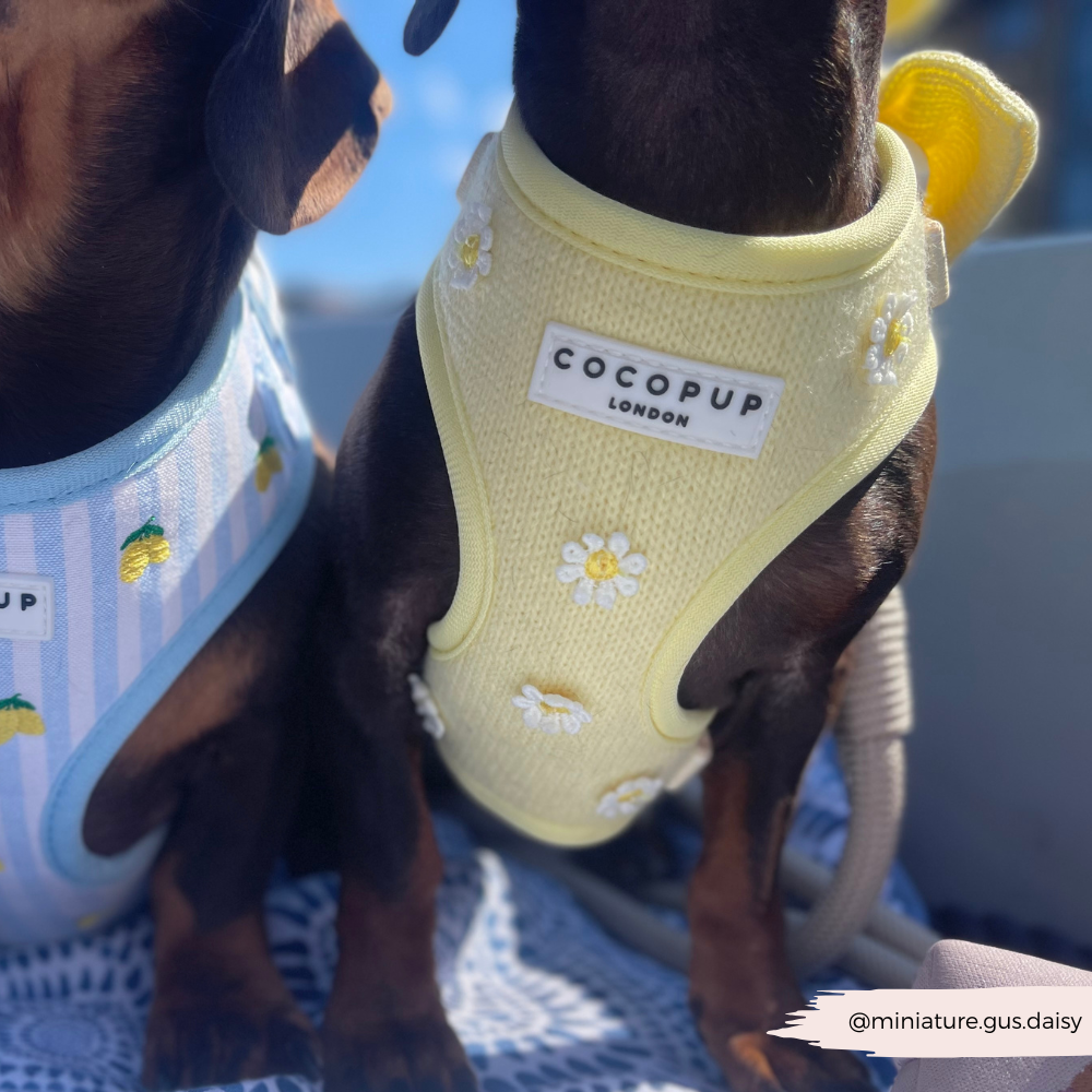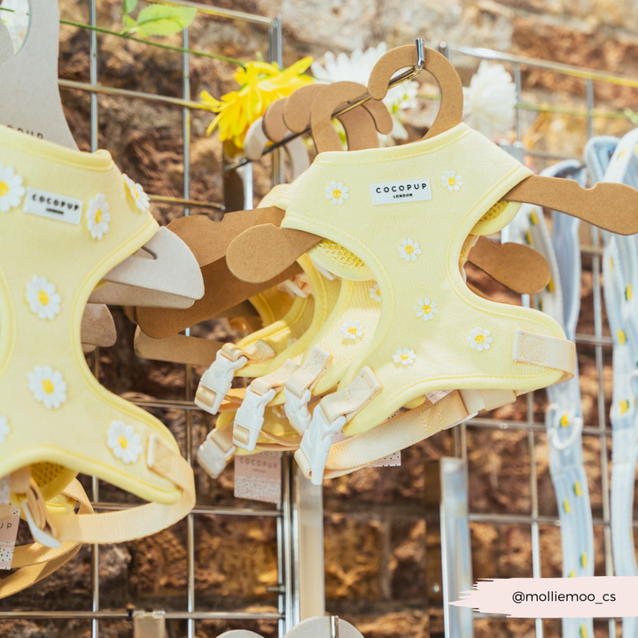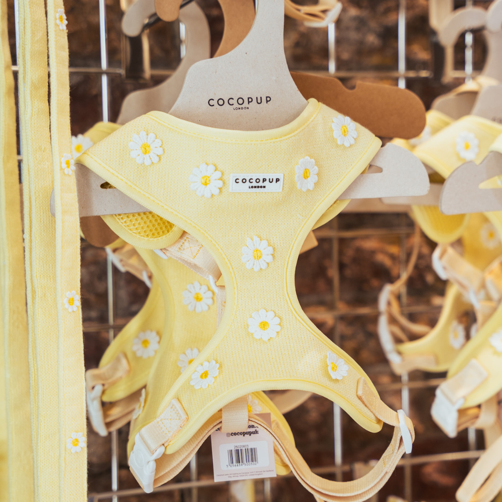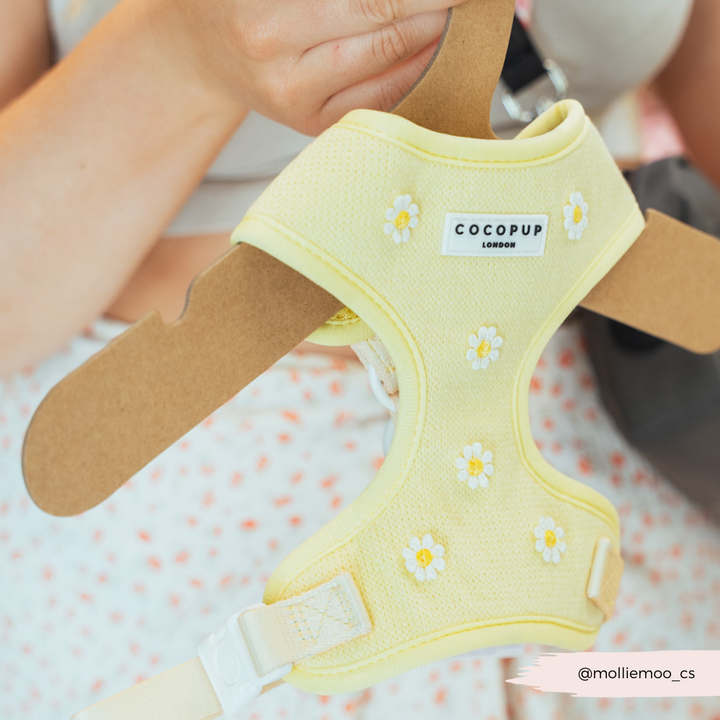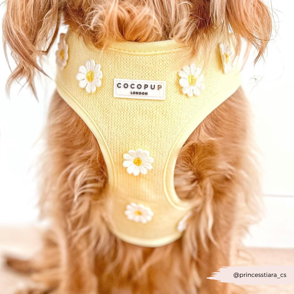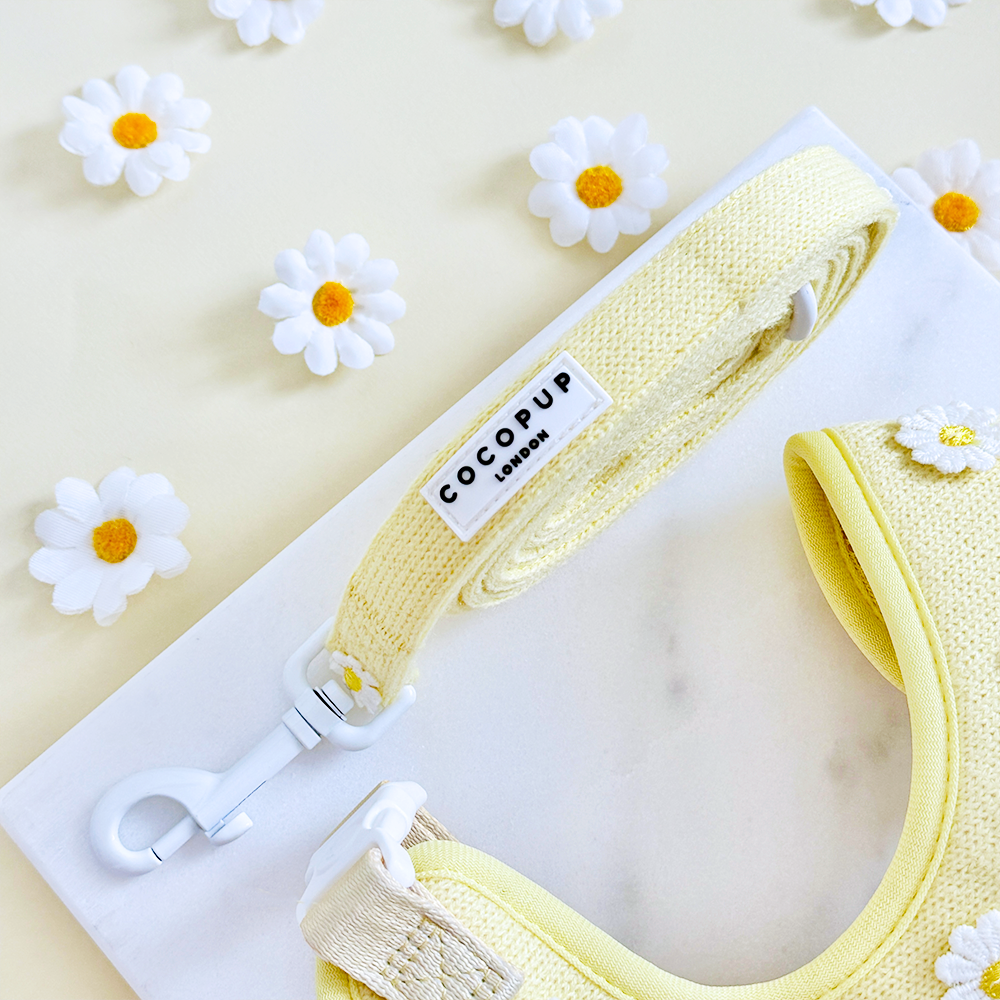 Unleash your pup's style with our Buttercup Pup Adjustable Neck Harness, Lead & Collar Bundle!Perfect for everyday walks, this buttery yellow set features adorable daisy details and adjustable straps for a comfortable fit. Watch your furry friend strut their stuff in this playful and practical bundle.