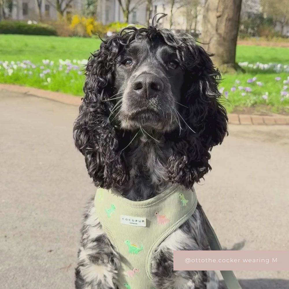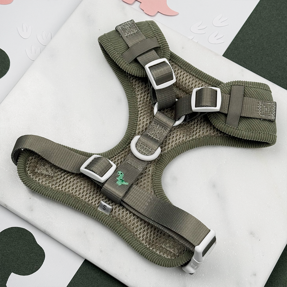 Ready for some rawr-some waklies in our Dino Doodles Collection. Prehistoric-inspired look that’s taking the UK dog scene by storm. Ditching the classic monochrome for something a little more adventurous, this bundle features a stunning sage and olive palette, perfect for pups who love to explore the outdoors. This dino-mite bundle includes our adjustable neck dog harness, matching collar, and lead, in a gorgeous earthy green corduroy that is as soft as it is stylish.