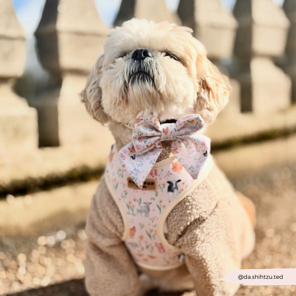 Bring a touch of the countryside to your dog's daily adventures with our Farmyard Friends Dog Sailor Bow Tie. Featuring all your fave farmyard animals - from cheeky chickens, to curious cows, this Spring design is perfect for pups who love a bit of rustic charm.
